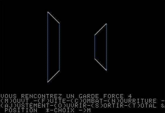 Il s’agit du jeu le plus abouti des 3 programmes présentés dans cette série d’articles, car il s’agit d’un véritable jeu d’aventure / jeu de rôle. Le jeu est difficile et lors de mes essais, je suis mort très rapidement après avoir rencontré des robots difficiles à vaincre.